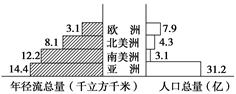 4、单选题 读世界四个主要大洲年径流总量和人口总量比较图,回答题。