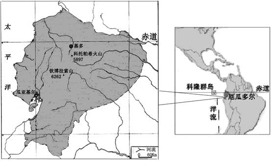 (4)香蕉喜湿热气候,怕低温、忌霜雪;玫瑰喜阳光充足,耐寒、耐旱。根据因地制宜的原则,在厄瓜多尔种植香蕉和玫瑰的区域也不同,请指出西部和中部分别适合种植的作物并分析其有利自然条件。(10分)