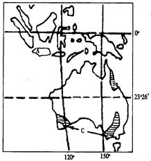 小题3:图示C位于澳大利亚东南部或西南部的地中海气候区,为著名的混合农业带,该地区农业生产的最大限制条件为水源不足,而大分水岭东侧水源丰富,故实施了东水西调工程。