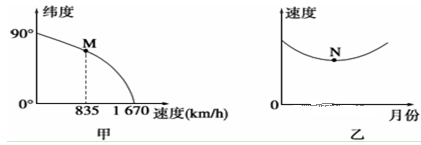1、单选题 读“地球自转线速度随纬度变化图”(甲)和“地球公转速度变化图”(乙),回答下列问题。