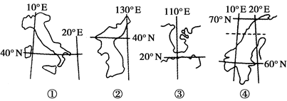 1.由图中信息可知,四个半岛分别为亚平宁半岛、朝鲜半岛、雷州半岛、斯堪的纳维亚半岛。半岛④为斯堪的纳维亚半岛,纬度高,受冰川作用影响较深,西侧多峡湾,是冰川侵蚀的结果。