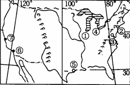 1.图中城市附近,盛产柑橘、柠檬、葡萄、油橄榄的是2.美国东北部地区能成为本国最重要的工业区,是由于下列哪些原因而形成?