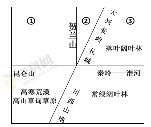 2、单选题 下图示意我国植被的地带性分布。读图完成下列问题。