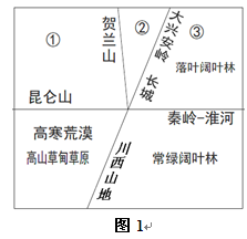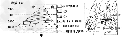 1.甲图中?①?、?②?代表的植被类型分别是