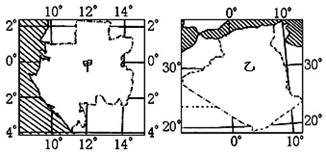 1.两国所在的大洲是:2.关于甲、乙两国地理特征等内容的叙述,正确的是: