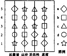 3、单选题 ? 如下图是“铁路、公路、河运、海运、航空五种交通运输方式技术经济特征比较”示意图,图中1至5表示从最高到最低的五个等级。读图回答1—2题。