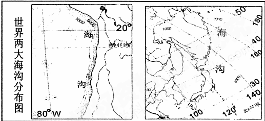5、单选题  读世界上两大海沟图,分析以下说法正确的是