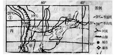 (1)图中20℃等温线分布有多处弯曲变化,分析其形成原因。(6分)