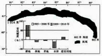 小题2:从图中图例可知,该流域2000-2010年耕地面积大幅度提升,农田灌溉用水量增加,从而导致流域内水体面积大幅度减小。选项B正确。
