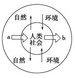 5、单选题 读人类社会与环境的相关模式图,图中箭头a表示人类通过生产活动从自然环境中获取物质和能量。箭头b表示人类通过消费活动将废弃物排放到环境中去。据此回答小题。