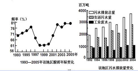 (1)1998年以后,该地区酸雨出现频率的变化趋势如何?分析造成这种变化的可能原因及其危害。(9分)
