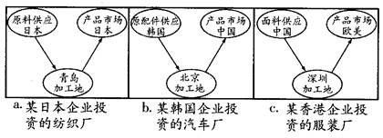 小题1:吸引三家企业在我国东部沿海地区三地投资办厂的最主要因素分别是? (? )