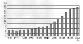 材料二:我国隔5年的65岁及以上人口增长示意图(65岁及以上年龄人口占总人口的7%,则出现人口老龄化)。