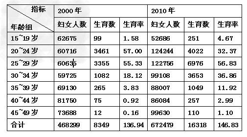 3、单选题 下表为我国某城镇2000年和2010年的人口统计数据,读表完成下列各题。