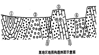 (1)图中①②③④四处,在地质构造上属于背斜的是______,属于向斜的是______。在野外考察中,有