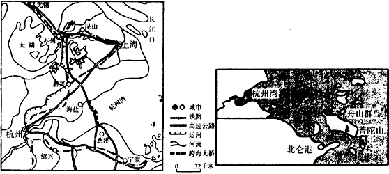 下图是杭州湾、舟山群岛示意图。读图回答下列问题。