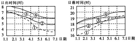 (6)A 点的地理坐标是__________,B点的日出时间是___________。
