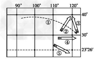 1.图中①~⑤路线跨区域调配的资源分别为