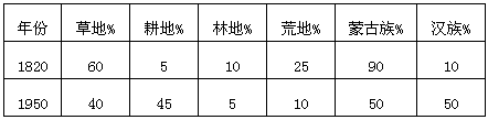 2、单选题  下面赤峰地区某村土地利用类型与民族构成变化表,据此回答(1)——(2)题。