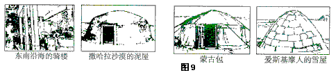 3、单选题  4.图9中四种文化景观能指示当地自然环境的特性,下列叙述不正确的是