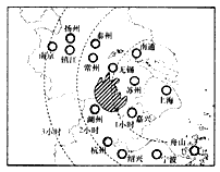 4、综合题 上海、杭州是长江三角洲地区中心旅游城市。2010年5月1日到10月31日,上海举行世博会,这会给“长三角”的旅游业发展带来新的契机。结合下图,回答下列问题。