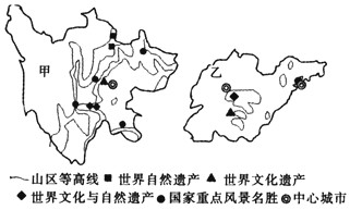材料一:我国甲、乙两省份的重点旅游资源分布图