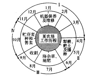 3、单选题 图为“北半球某农场的工作历程(农事安排)示意图”。读图,回答题。