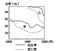 1、单选题 读甲、乙两国人口出生率与死亡率变化曲线图,完成下列各题。?