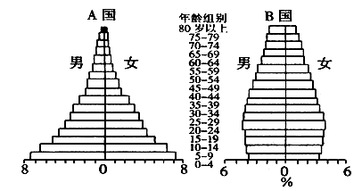 3、综合题 根据A、B人口金字塔图,回答下列问题。(14分)