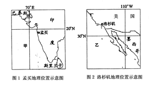 1、综合题 孟买和洛杉矶分别是发展中国家和发达国家具有代表性的城市。根据图回答下列题。(15分)