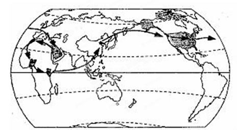 (1)孟买位于洛杉矶的__?方向。(2分)