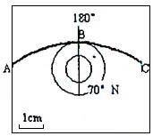 3、单选题 下图表示全球处在同一日期时,曲线ABC上的太阳高度为0°读图,完成1~2题。