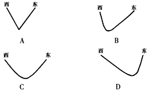 2、若沿东、西梁山作一长江横剖面图,下图中较吻合的是