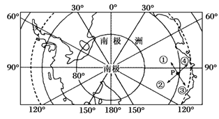 【小题2】P地位于北半球高纬度,受极地东风带影响,盛行东南风,图中表示东南风的是④。