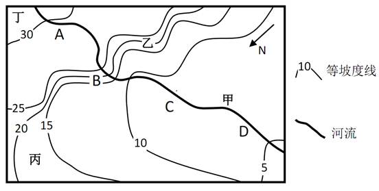 D.河流从丁地流向甲地