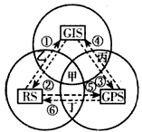 (3)图3中①②③④⑤⑥箭头指向线分别表示3S技术的不同应用功能,其中表示“提供影像信息功能”的是⑤和______,表示“提供空间定位信息功能”的是⑥和______,表示“反馈影像信息处理结果”的是______。