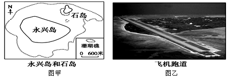 3、单选题 南海西沙群岛中面积最大的永兴岛经过多年建设,已成为我国南海永不沉没的“航空母舰”。岛上建有飞机跑道,图甲表示永兴岛未建飞机跑道前的天然海岸线。读图甲和图乙,回答各题。