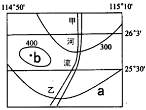 【小题2】图中河流在乙河段大致的流向是( )