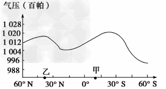 (1)甲地的风向为    。丙地就气流状况来讲属于    ,其气压中心的垂直气流方向为