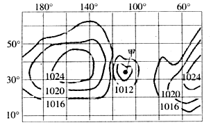 2、单选题 下图示意图为某区域某季节等压线分布(单位:hpa),读图回答下列各题。