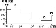 本题解析:整合信息可知,图示乙处为美国西部高山区、处于海洋水汽的背风坡,所以降水稀少。