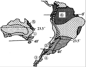 4、综合题 下图是两大洲气候区分布示意图,读图回答下列问题。