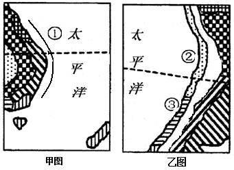 (3)甲、乙两图的北部都有世界著名的大渔场,说出它们的名称并指出其成因。