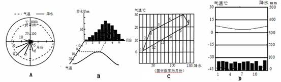 1、单选题 下图反映的是下列哪个地区的气候特点