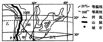 (3)Q城市所在国家修建连接PQ两城市之间的铁路,铁路修建时可能遇到哪些困难?(3分)