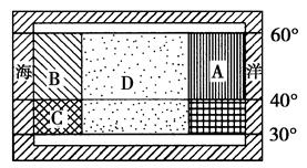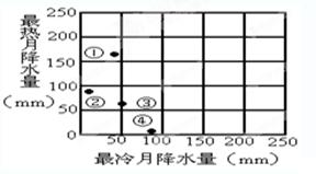 (4)下图为四种气候类型最热月和最冷月的降水量分布图,能够代表字母D的是 。(1分)