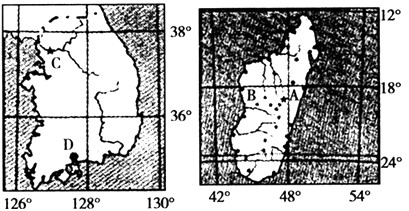 材料二:下图为韩国和马达加斯加的地理位置简图。