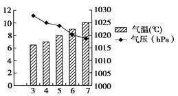 1、单选题 下图是“某地3日~7日气温和气压的变化曲线图”,根据图中气温和气压的变化趋势可以推测出,7日以后该地气温和气压的特点是( )