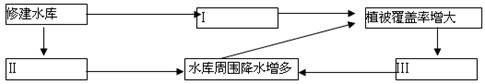 1、单选题 人类活动会导致某些自然要素的变化,进而带动其他要素变化,其中水是比较易受人类影响的自然要素。读图,按方框Ⅰ、Ⅱ、Ⅲ顺序相应内容排序正确的是