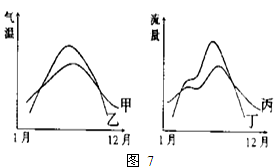 3、单选题 图7为“人类活动破坏前后,东北三江湿地气温年变化及其区域内某河流流量年变化示意图”。读图7,回答问题。